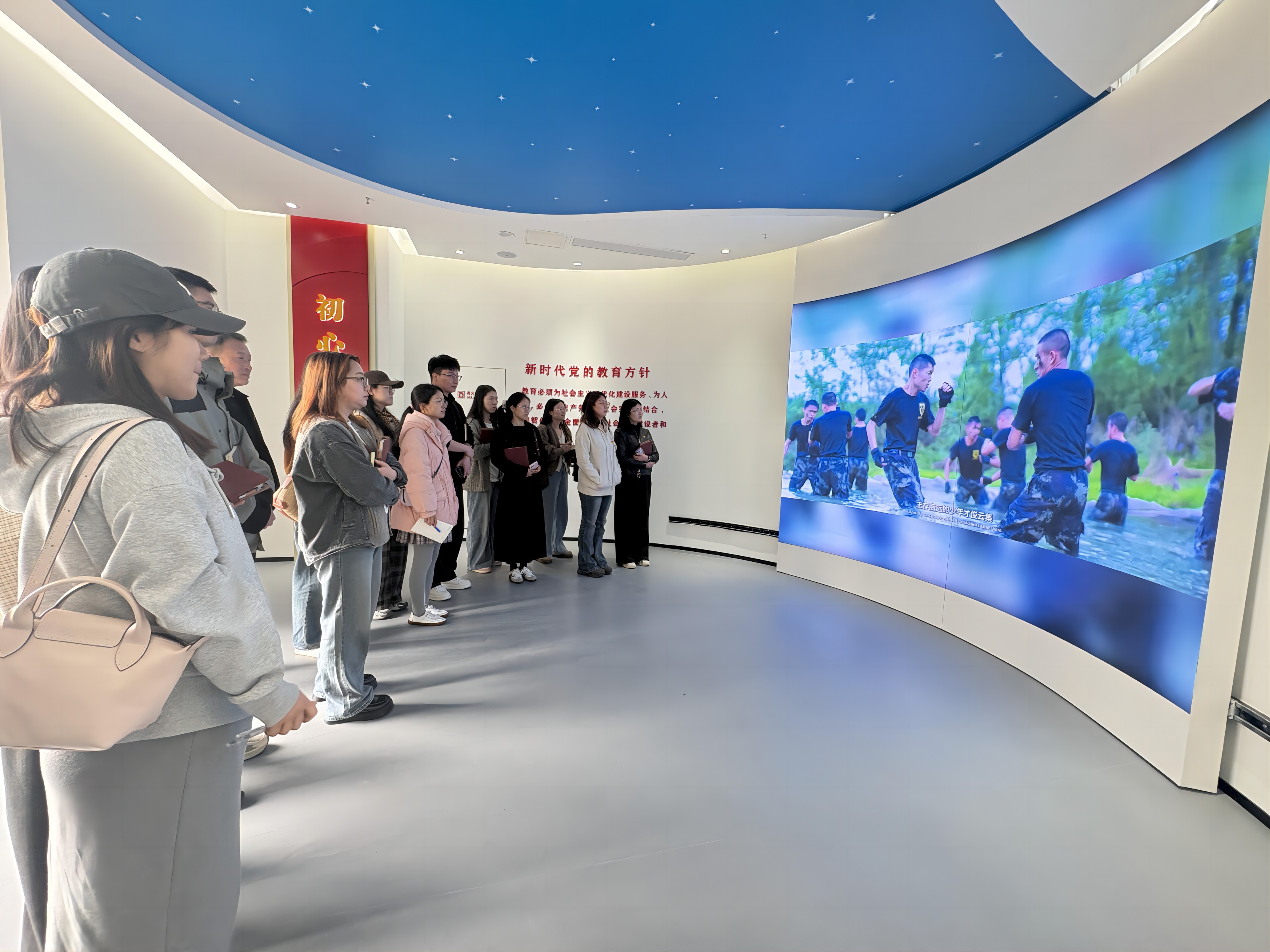 在讲解员的引导下,辅导员们依次参观了“初心领航”“文脉相传”“砥砺奋进”“奔向未来”等主题展区。智慧党建馆运用现代信息技术,将党的百年奋斗历程、伟大成就以及学校发展历程以可视化、互动化的方式进行生动呈现。在智慧答题区,大家通过触控大屏参与党史知识竞答,现场检验学习成效。参观过程中,辅导员们认真聆听、深入交流,在历史与现实的交汇中接受思想洗礼。