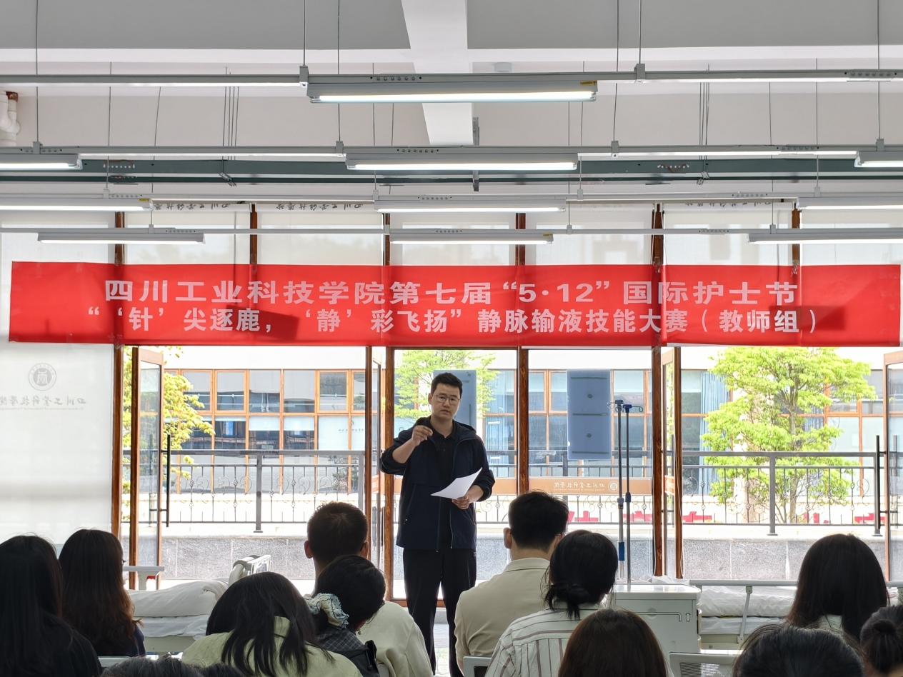 匠心砺技守初心,以赛促教强本领。为锤炼护理教师专业实操技能,提升临床教学水平,4月19日下午,大健康学院在医学护理实验实习中心207室顺利举行教师组静脉输液技能大赛。学院副院长刘琼碧、护理系副主任白雪、综合办主任王君、教学办副主任蒋梦碟及专业教师唐婷、刘盛露担任评委,学院近60名教师到场观摩学习。大赛由刘纹廷主持。