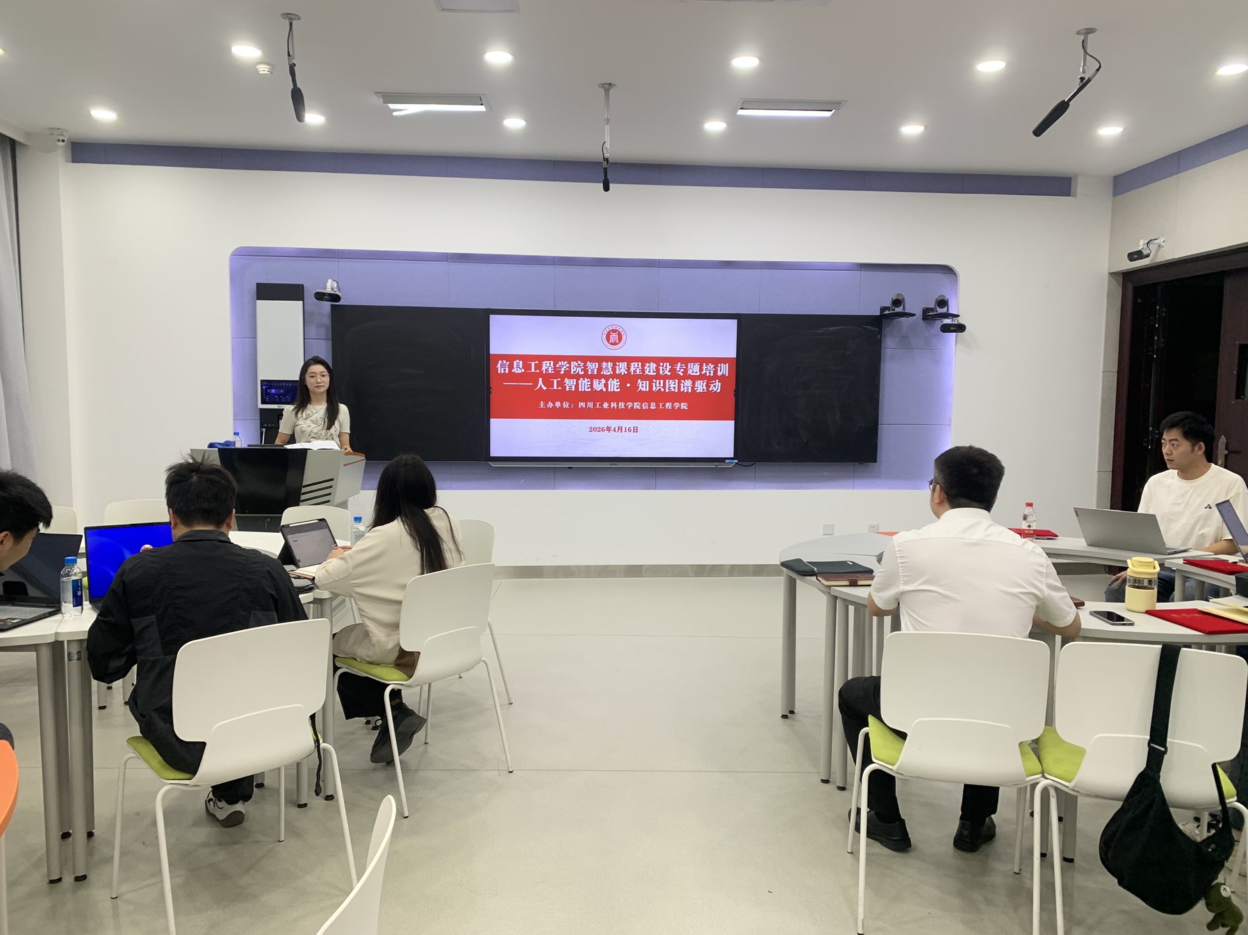 为扎实推进智慧课程建设,推动AI与教育教学深度融合,4月16日下午,信息工程学院在龑江E406举办第一期智慧课程建设专题培训交流会。超星集团技术团队、信息工程学院智慧课程建设团队负责人及骨干教师参加会议。会议由院长宋文正主持。