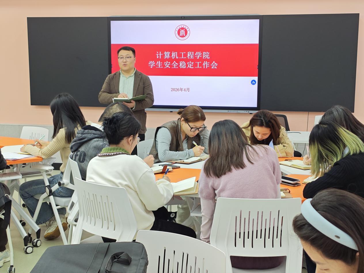 4月26日下午,计算机工程学院学工办在龑江E201召开学生安全稳定工作会。会议由学院学工办副主任张琳主持,学院党总支副书记张东国、全体辅导员参加会议。