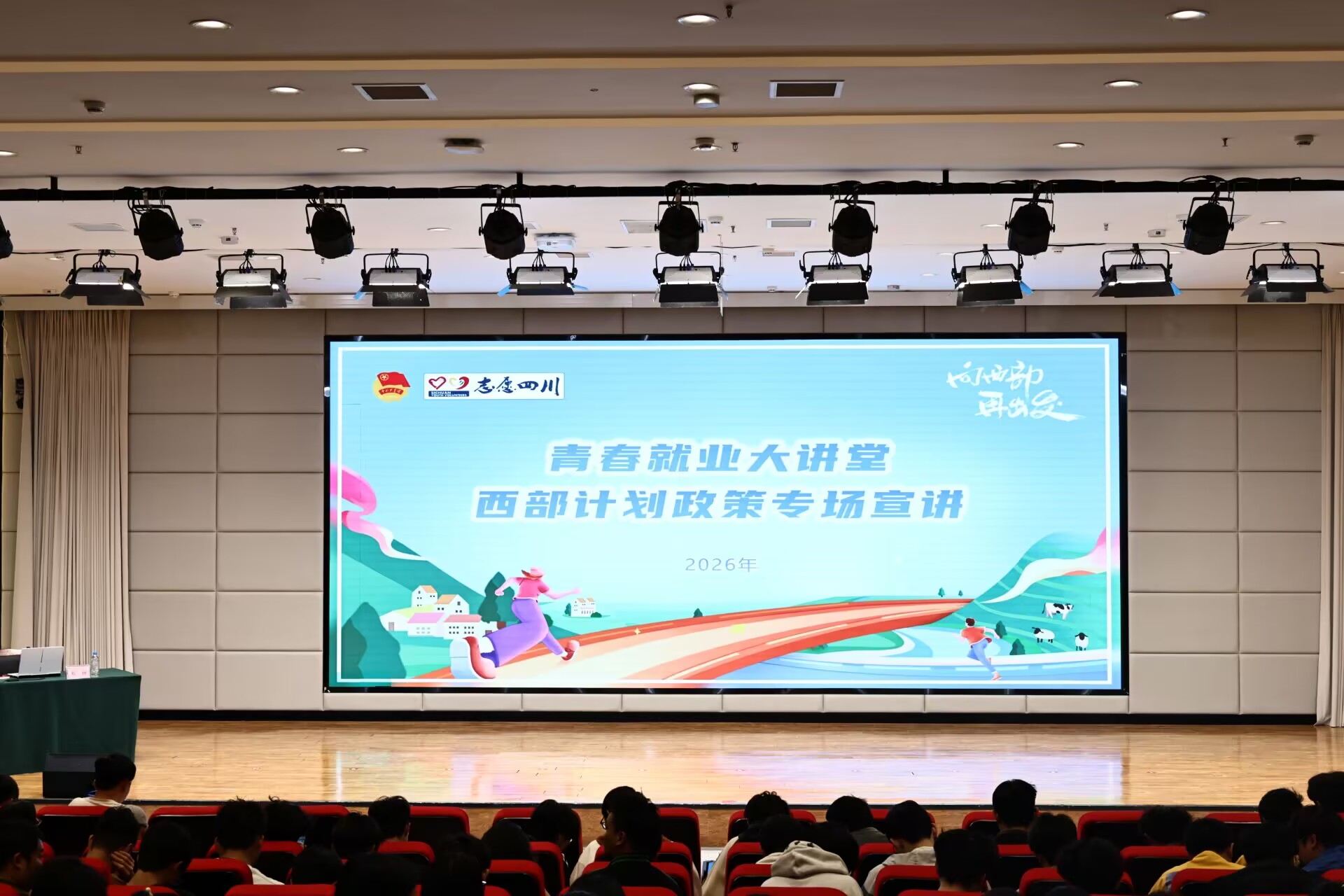 4月28日下午,2025年大学生志愿服务西部计划政策宣讲会在学校龑江C区报告厅举行。德阳市西部计划项目办负责人刘甜应邀到校作专题宣讲,为学校学子系统解读西部计划相关政策。众多有志于服务基层的青年学生到场聆听。
