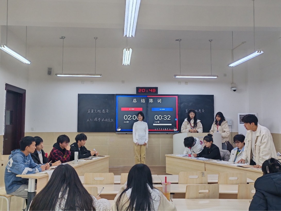本次校内选拔赛作为两校友谊赛的重要环节,旨在遴选最具思辨能力与表达风采的优秀辩手,组建代表学校参加后续两校决赛的队伍。自赛事启动以来,吸引了校内学生广泛关注与踊跃参与,共组成十余支参赛队伍。比赛中,各队辩手精神饱满、逻辑清晰,以严谨的论点阐述立场,以敏捷的思维应对交锋。赛场气氛热烈,辩手们或引经据典、沉着论证,或慷慨陈词、机锋应对,在思想的碰撞中展现出扎实的语言功底、良好的人文素养与昂扬向上的青春风貌。