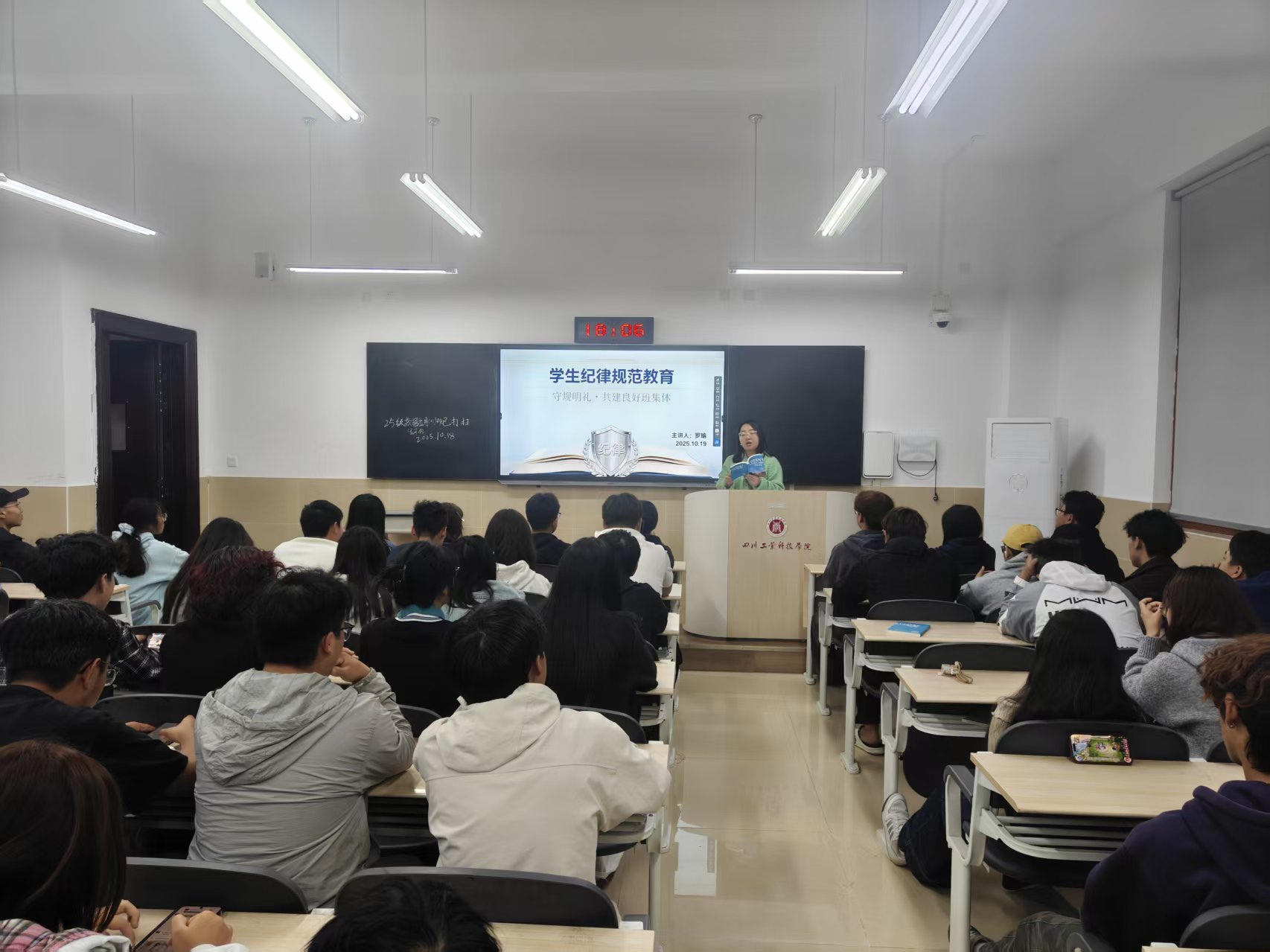 10月19日晚,学院组织各班开展“学生纪律管理”主题教育班会,旨在引导学生养成良好行为习惯与自我管理能力,维护正常教育教学秩序。