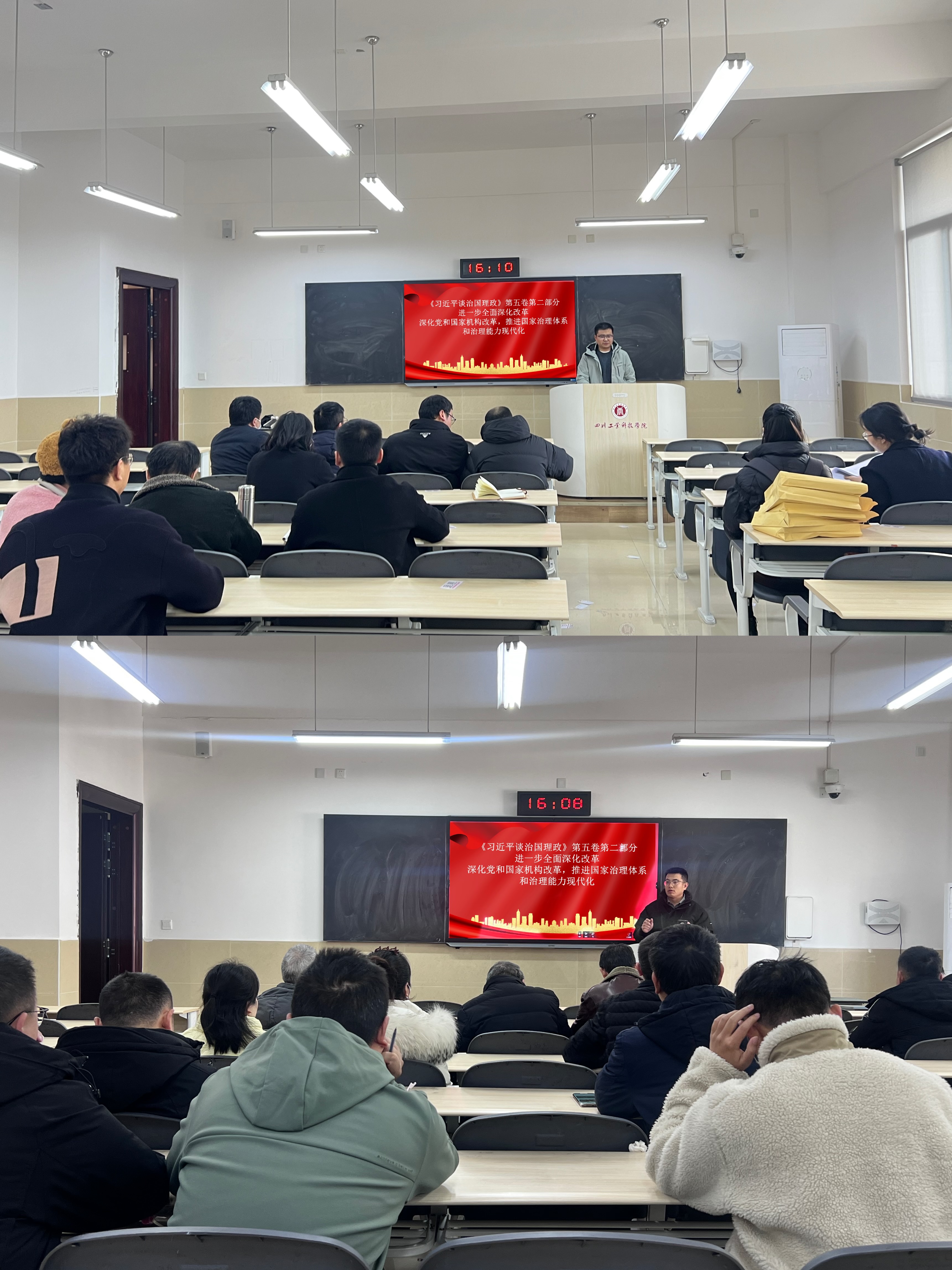 学习活动中,两系分别组织教师通过领学导读、重点解析、交流研讨等形式,系统学习了《习近平谈治国理政》第五卷相关章节的核心要义与精神实质。与会教师围绕“进一步全面深化改革”的历史方位、实践路径,深化党和国家机构改革的重大意义、目标任务,以及推进国家治理体系和治理能力现代化的时代要求、方法原则等内容进行了深入探讨。大家一致认为,习近平总书记关于全面深化改革和国家治理现代化的重要论述,系统回答了新时代条件下为什么改、改什么、怎么改等一系列重大问题,是指导我们推进改革实践、提升治理效能的根本遵循。