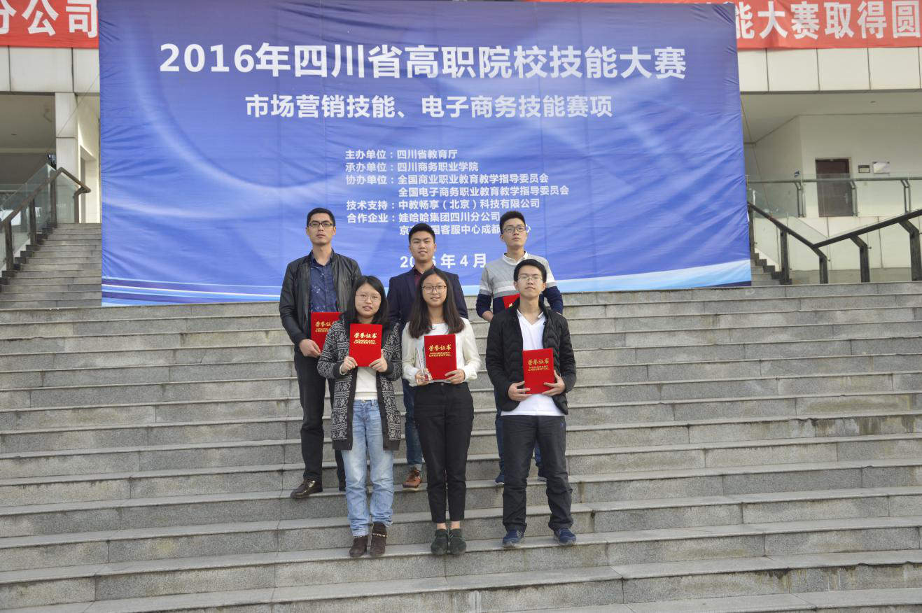 4月16日至17日,由四川省教育厅主办的“2016年四川省高职院校技能大赛”在四川商务职业学院举行,在市场营销技能赛项中,工商管理学院学子荣获三等奖。