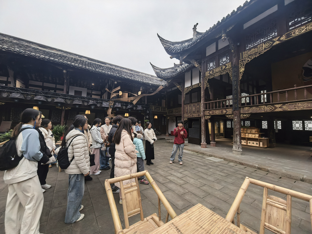 11月24日,经济管理学院2023级旅游管理1班全体学生在专业教师毛慧、尚天霞的带领下,赴德阳市孝泉古镇开展为期一天的专业实训教学。本次实训以“文化传承与旅游实践融合”为主线,通过实地考察延祚禅寺、武圣宫、半边街、姜孝祠等核心文化地标,深化学生对旅游管理的实践认知,提升专业素养。
