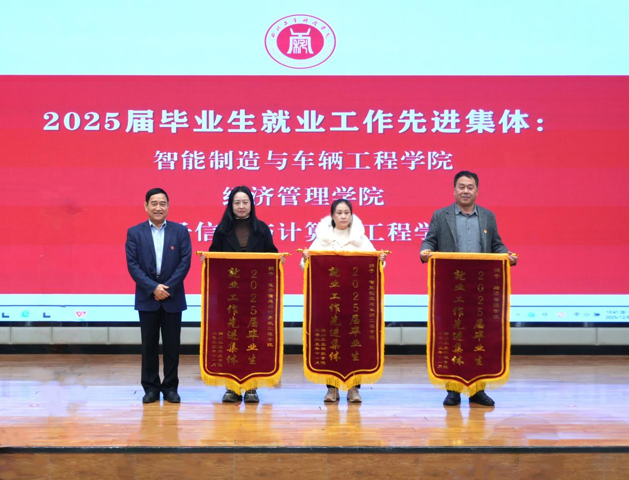学校执行校长张仁志、副校长张继华、党委副书记杨朋分别为2025届毕业生就业工作先进集体和先进个人获得者进行了颁奖。获奖代表在会上进行了工作经验分享。