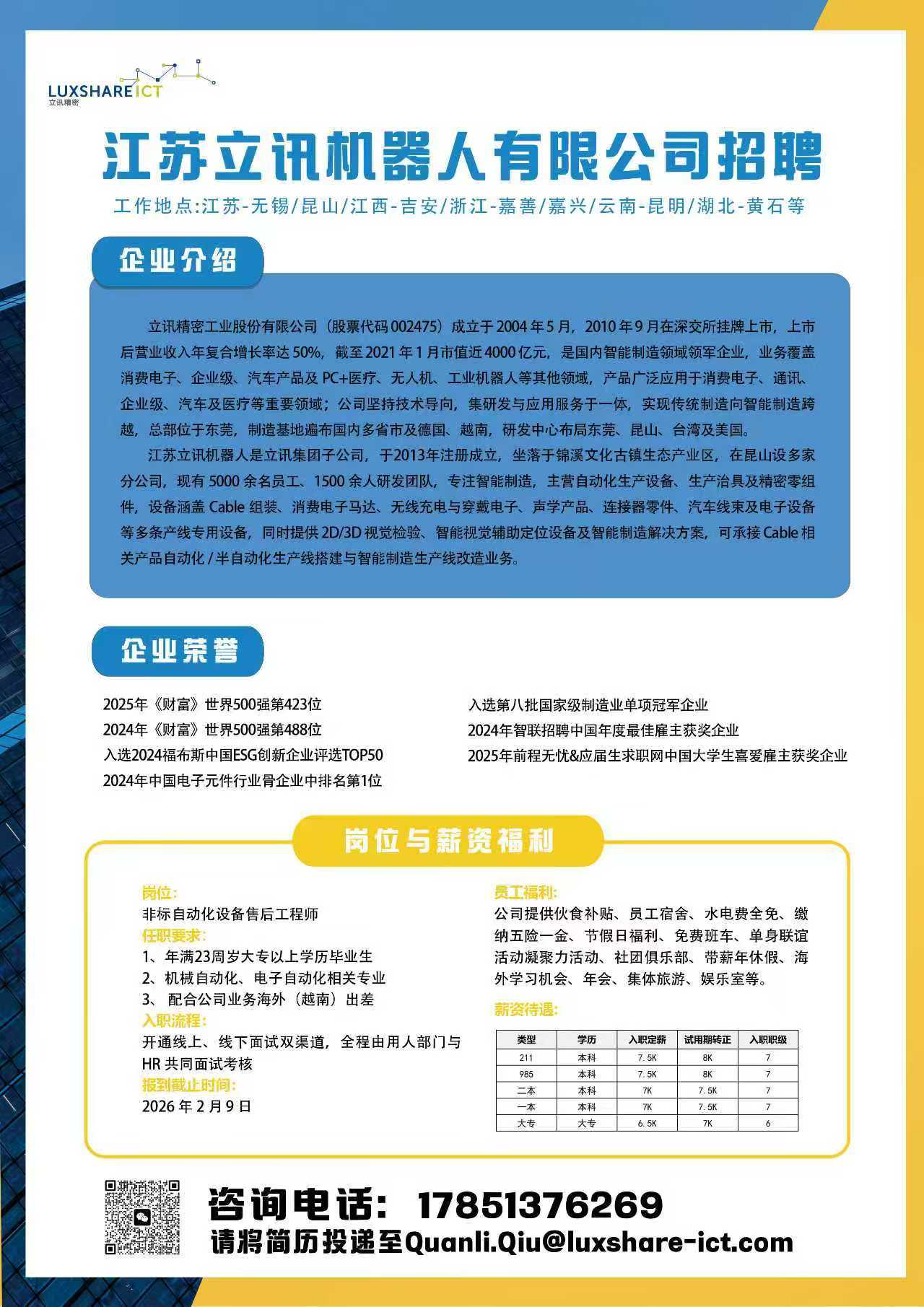 发布时间:2025-12-29 来源:招生就业处 作者:江苏立讯机器人有限公司