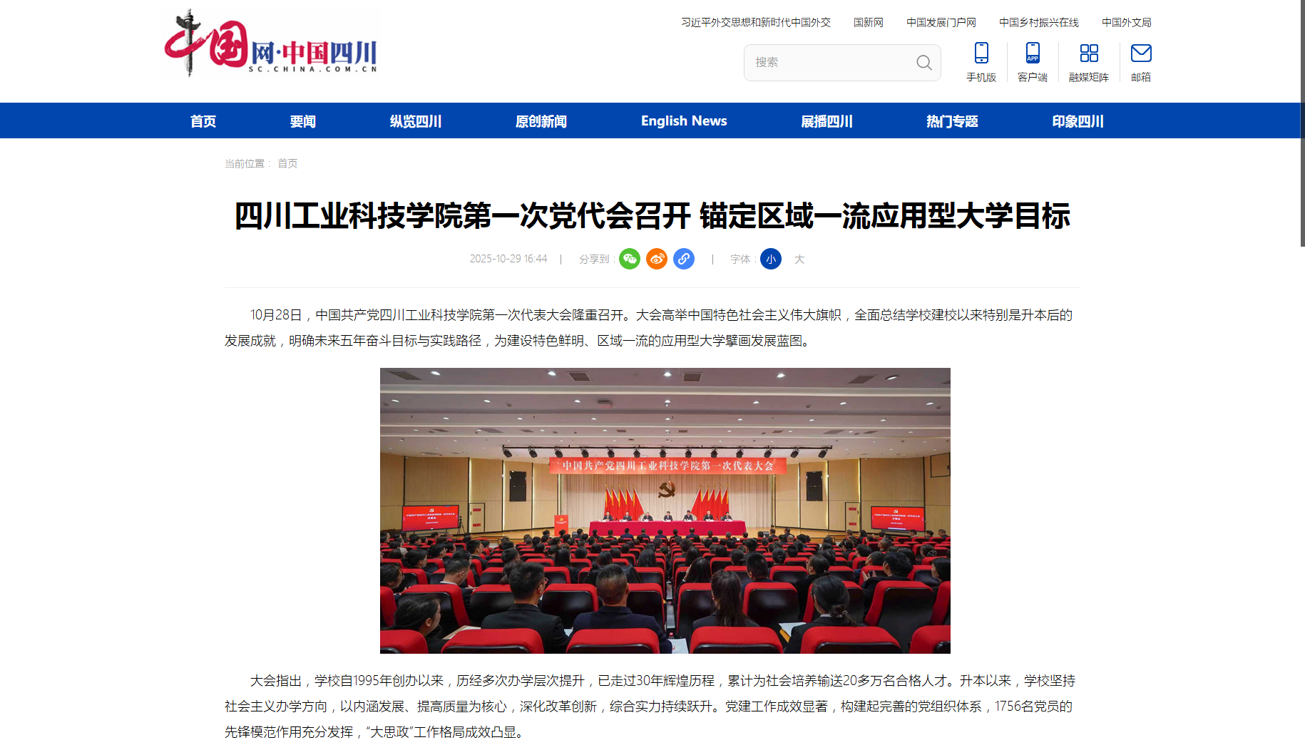 【中国网】四川工业科技学院第一次党代会召开 锚定区域一流应用型大学目标