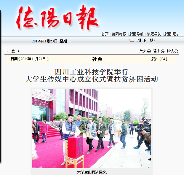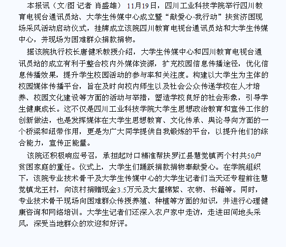 【德阳日报】四川工业科技学院举行大学生传媒中心成立仪式暨扶贫济困活动