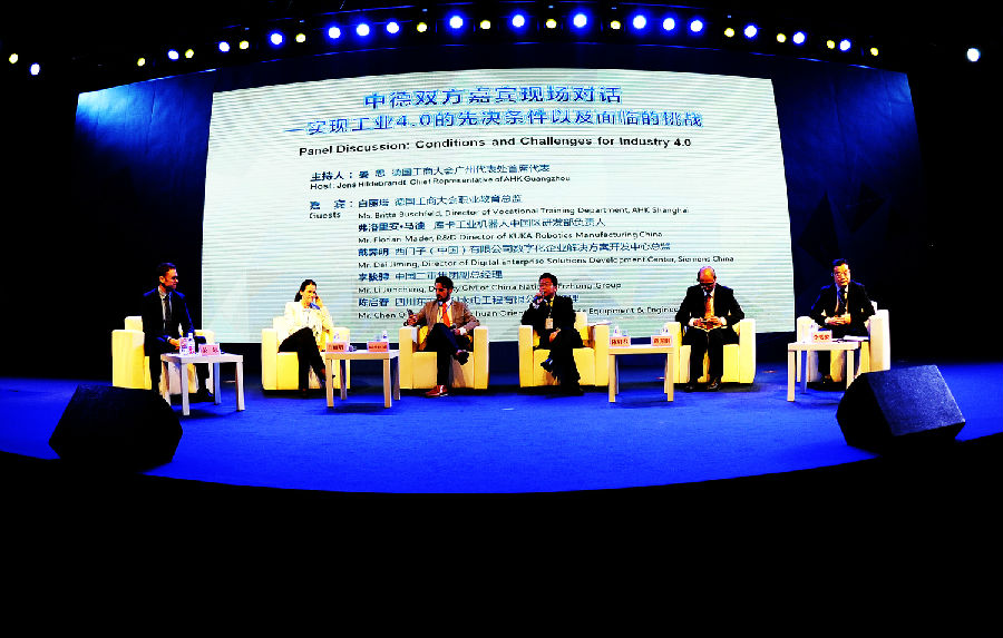 本次大会由四川省经信委、省教育厅、省商务厅、德国驻成都总领事馆及德阳市政府主办。会议立足深度对话,以“演讲+现场对话”的形式,德国前副总理兼外长约施卡·菲舍尔作“欧盟企业在中国西部之机遇”演讲,库卡工业机器人中国区研发部负责人就德国工业4.0如何推动西部经济和德阳建设国家高端装备产业创新发展示范基地进行演讲;弗劳恩霍夫工厂运行和自动化研究所亚洲区负责人对德国数字化生产技术与体系进行介绍;德国工商大会职业教育负责人介绍德国双元制职业教育的校企合作等情况。