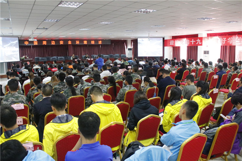 活动期间,国防科技大学指挥军官基础教育学院董晓军教授为参会师生作了题为 《中国周边安全环境综述》的国防教育讲座。精彩的讲座赢得与会师生的热烈掌声,同学们纷纷表示受到了一次高水平的爱国主义教育。