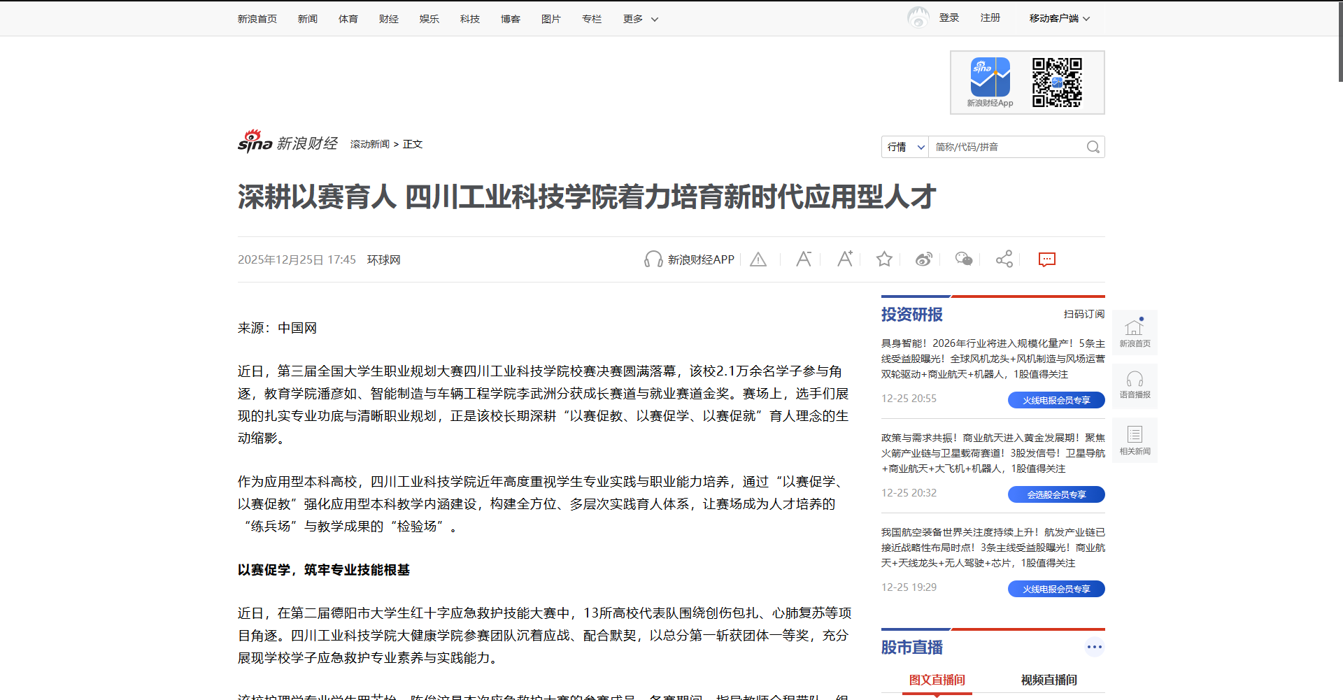 【新浪新闻】深耕以赛育人  四川工业科技学院着力培育新时代应用型人才