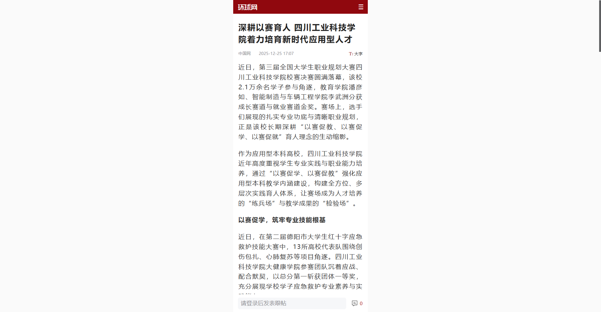 【环球网】深耕以赛育人  四川工业科技学院着力培育新时代应用型人才