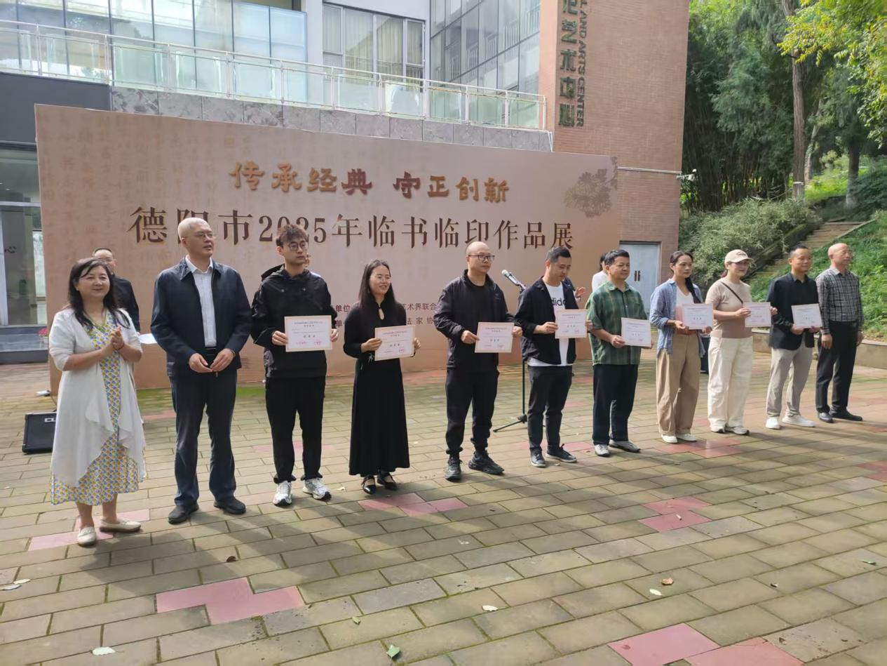 10月9日,由德阳市文学艺术界联合会指导、德阳市书法家协会主办的2025年“传承经典·守正创新”临书临印作品展顺利举行。学校教育学院技能教研室尹茜老师在本次展览中荣获佳绩,并作为获奖作者代表发言。