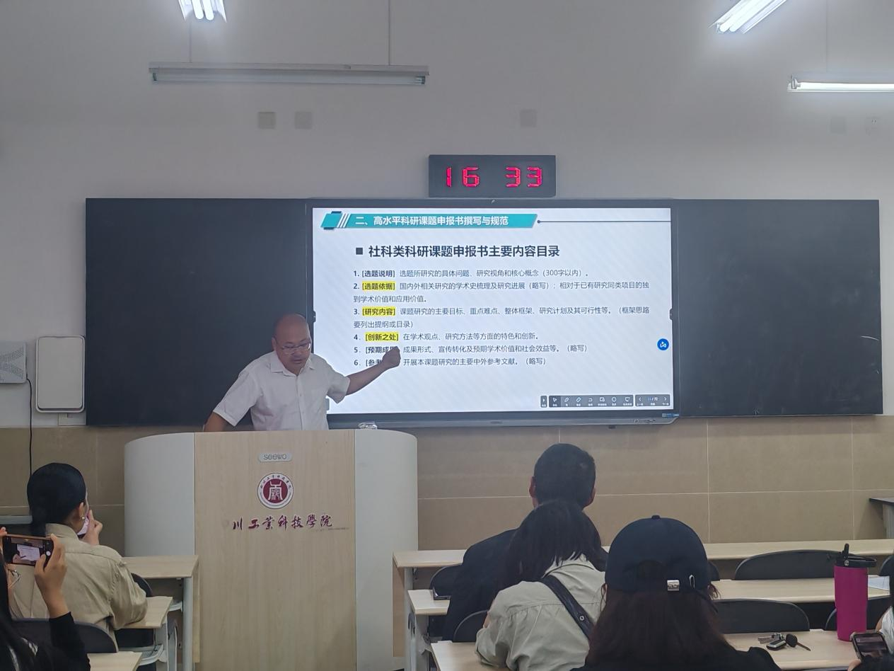 会议伊始,学院院长蔡林围绕“近期可申报的科研课题”“高水平科研课题申报书撰写与规范”“高质量论文撰写与规范”三大板块开展科研工作培训。他结合实际案例,深入浅出地讲解了科研课题申报的要点、论文撰写的规范要求,为教师们在科研道路上指明了方向,助力教师提升科研素养与学术能力。
