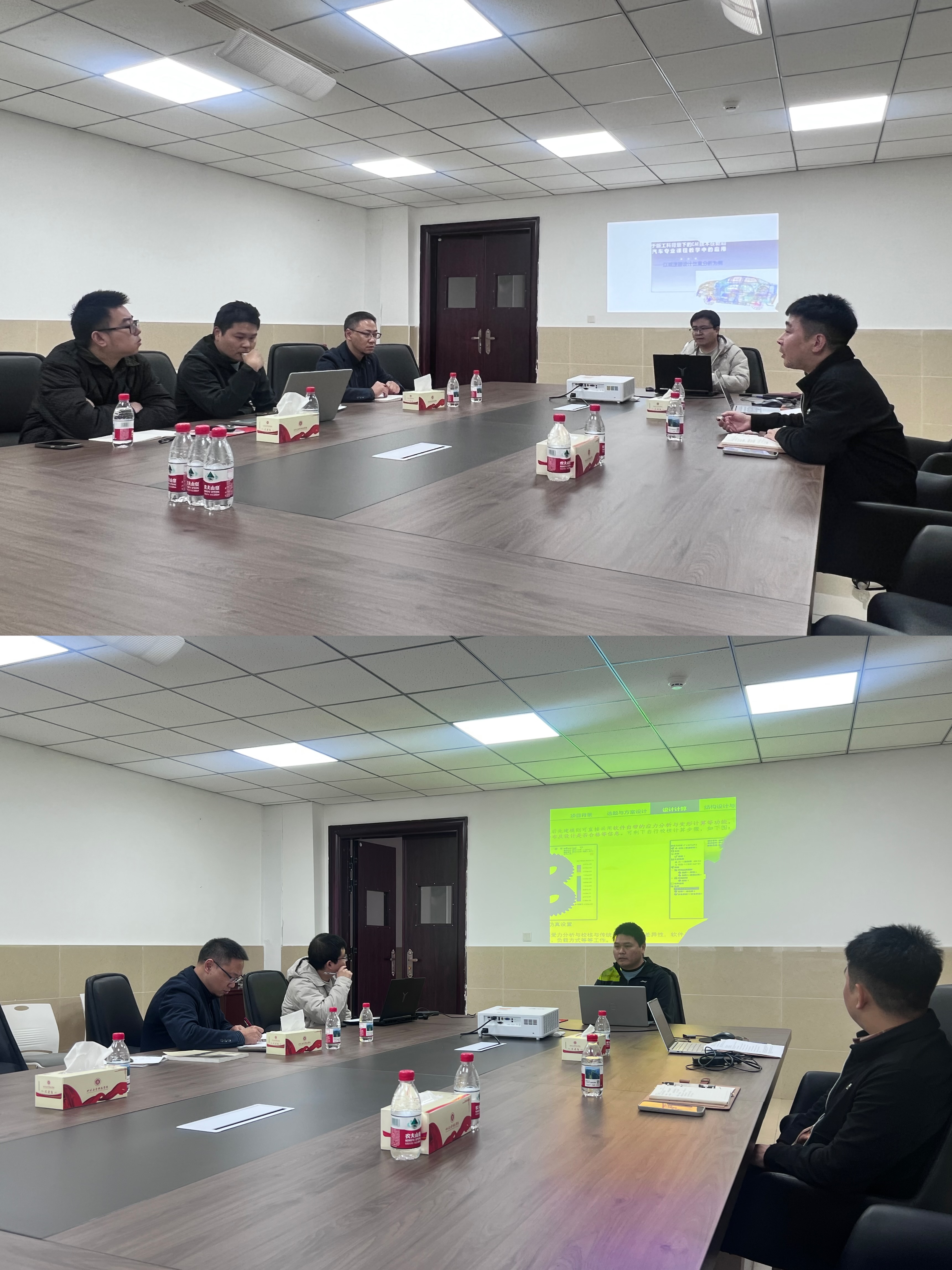 会议以模拟演练和集中研讨相结合的形式开展。钟全能、姚亮、王静雯三支参赛团队依次进行教学展示,重点呈现了在AIGC教育应用、CAE工程仿真教学等前沿方向的创新实践。各团队结合具体教学场景,分别展示了智能教学内容生成、个性化学习路径设计、高精度工程仿真等数字化教学解决方案,充分体现技术赋能教学的多元路径与应用潜力。