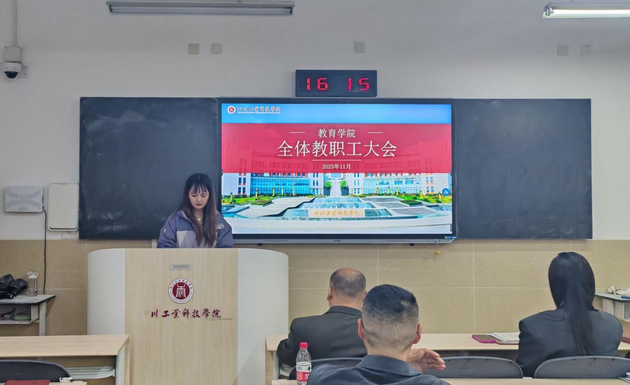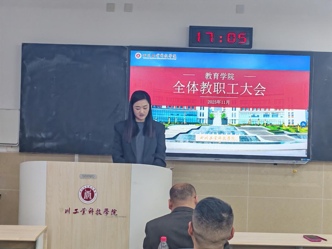 11月13日下午,教育学院在龑江D410教室召开教职工大会。会议由教育学院综合办副主任周洪婷主持,学院全体教职工参会。