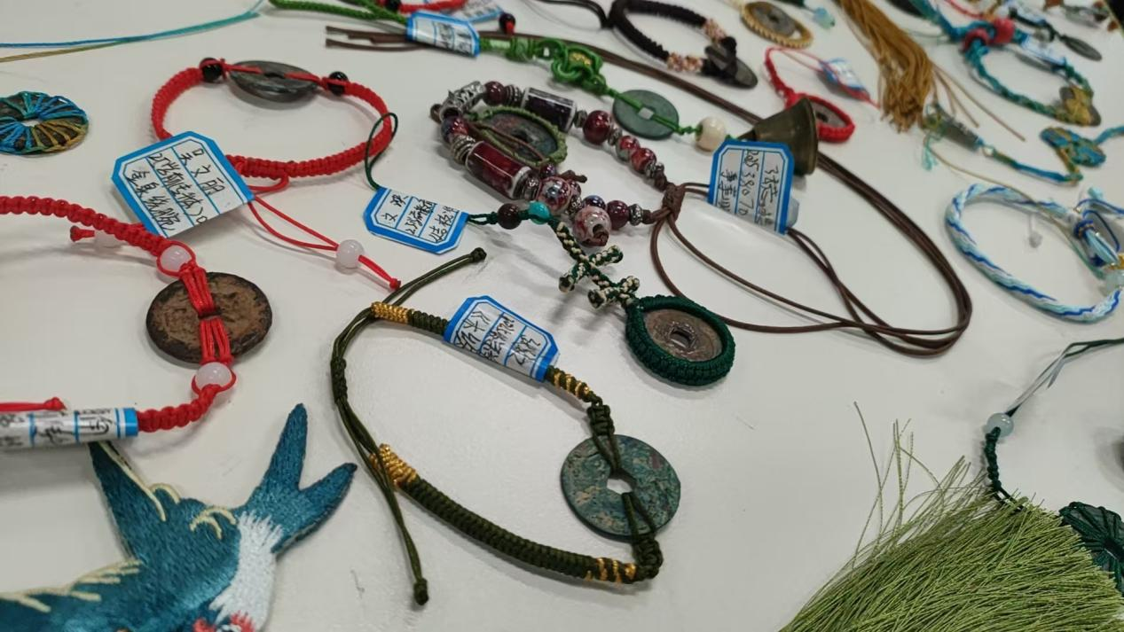 课程选取了唐代“开元通宝”“乾元通宝”、清代“乾隆通宝”等中国古钱币,以及日本“宽永通宝”、越南“景元通宝”等数十种具有代表性的货币作为创作载体。学生从学习基础绳结技法入手,逐步探究古币的形制特征、铭文书法与历史内涵,通过编织、缠绕、镶嵌等工艺,将古朴的货币转化为兼具审美价值与文化意义的挂饰、摆件及文创产品,使沉睡的文物在当代设计与手工创作中焕发新生。