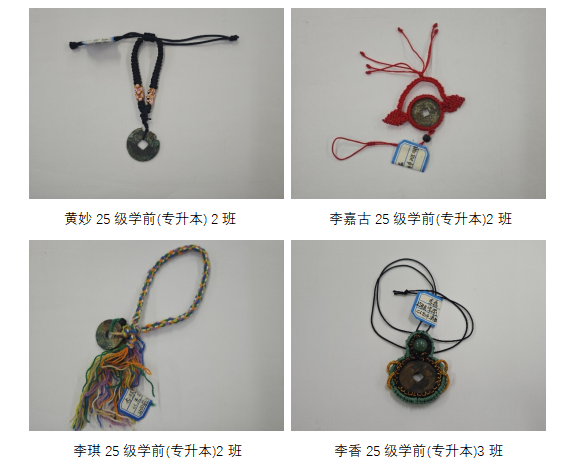 本次实践构建了“文物认知+非遗技艺+课程创作”的跨界教学模式。学生不仅扎实掌握了传统绳结技艺,更在师生共创中锻炼了设计思维、审美判断与团队协作能力。部分优秀作品已展现出良好的应用前景,如以古币为核心元素设计的胸针、车挂、壁饰等,成为连接传统文化与现代生活的创意载体。课程负责人表示,此次活动旨在引导学生理解,传统技艺不仅是“手上的功夫”,更是“心中的传承”——是对文化的深度解读、创造性转化与有效传播。