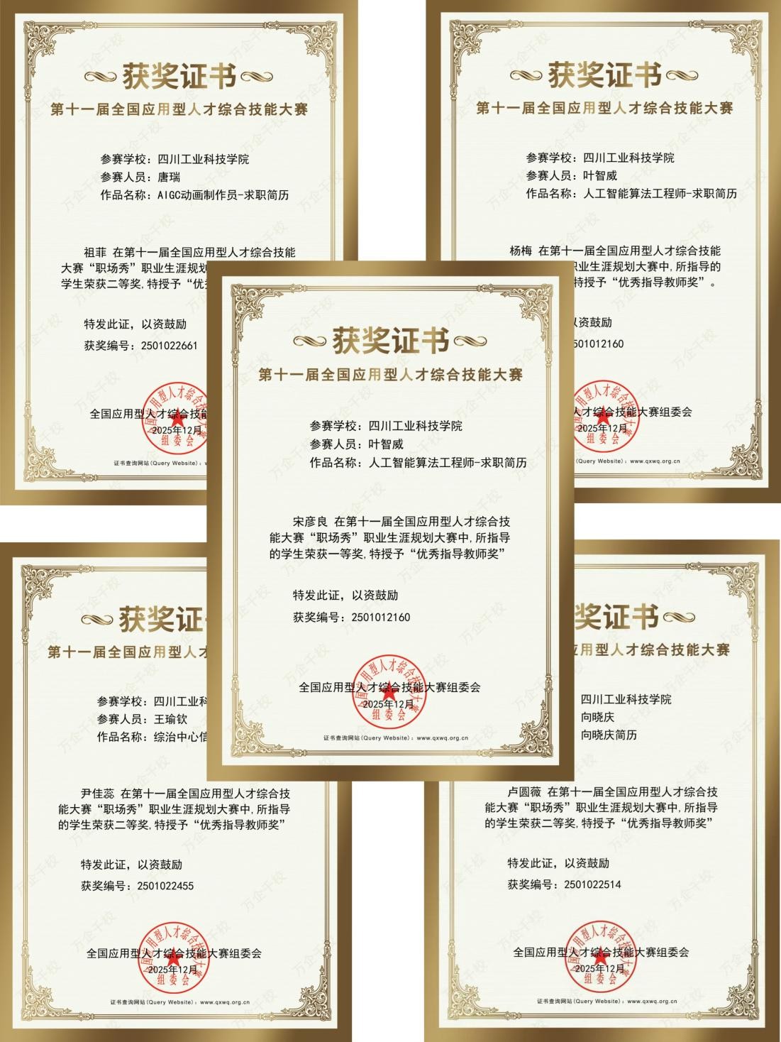 近日,由教育部主办的第十一届全国应用型人才综合技能大赛落下帷幕。学校学子在全国竞赛中表现优异,共斩获全国一等奖1项、二等奖3项,充分展现了学校应用型人才培养的扎实成效。