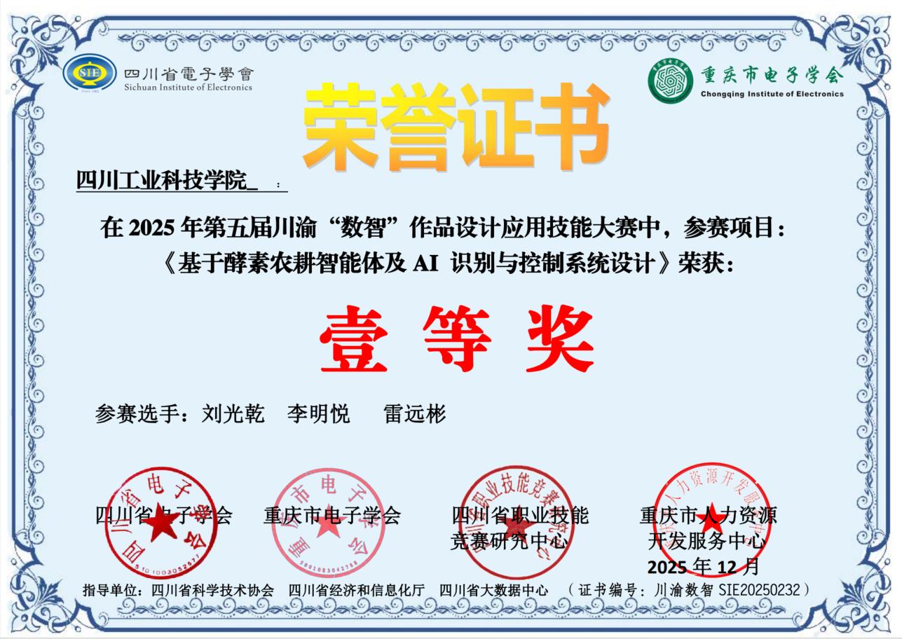 近日,第五届川渝“数智”作品设计应用技能大赛决赛结果揭晓。学校信息工程学院选派的四支参赛队伍表现优异,在指导教师的精心指导下,凭借扎实的专业功底与突出的创新实践能力,从众多参赛团队中脱颖而出,最终荣获一等奖1项、二等奖1项、三等奖2项,获奖层次与数量均位居前列,充分展现了学校在应用型人才培养与“数智”领域教育教学改革方面的显著成效。