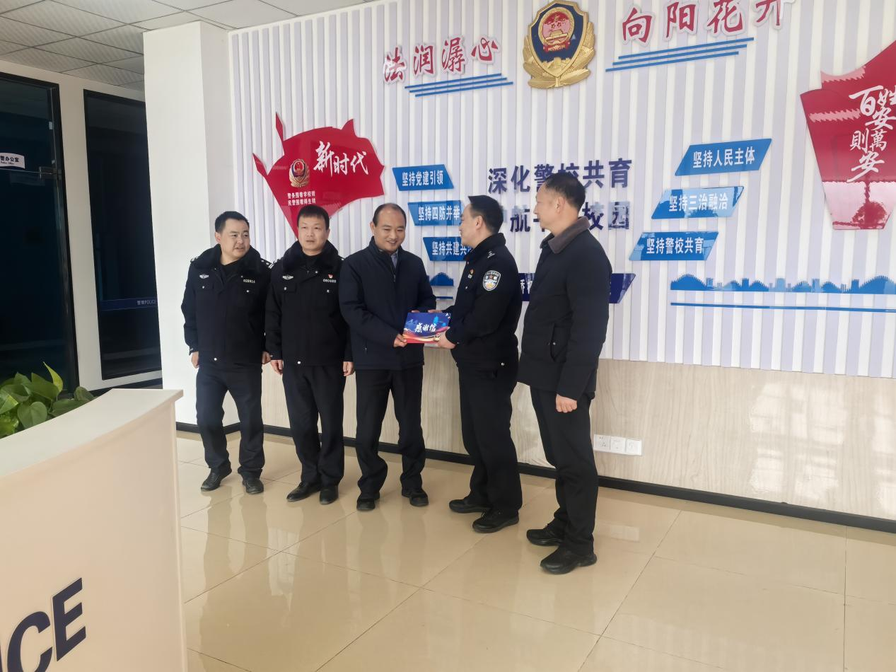 1月15日下午,德阳市公安局罗江区分局万安派出所向学校送来感谢信,对学校在平安校园建设、反诈禁毒宣传等工作中给予的倾力支持与深度协作表示诚挚感谢。学校党委副书记杨朋、安全保卫处处长雷全祖代表学校接待来访,并与派出所负责同志就进一步深化警校协作机制、共筑校园安全防线进行了座谈交流。