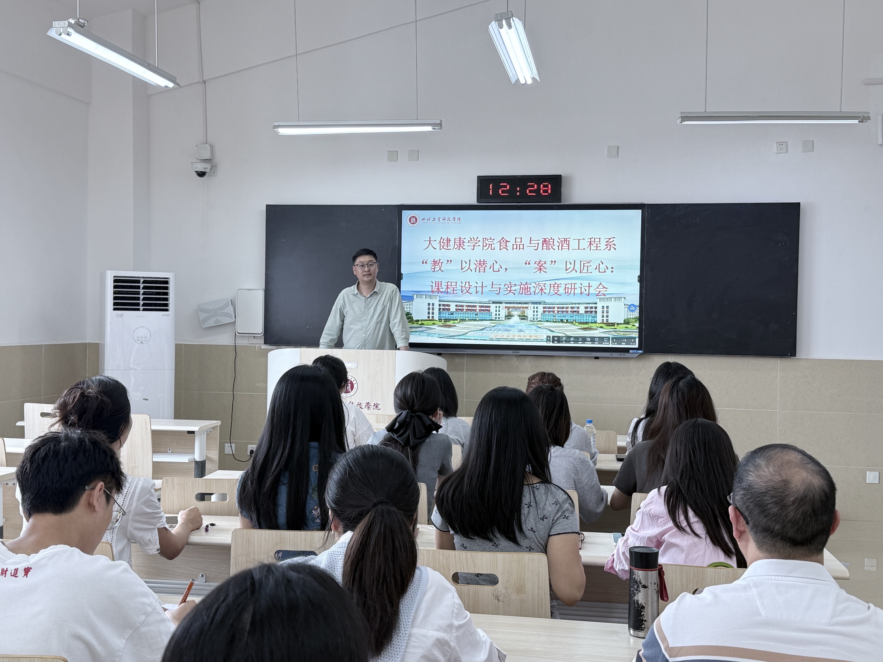 9月5日中午,大健康学院食品与酿酒工程系在龑江校区B501教室召开专业课程设计与实施研讨会。系部全体教师参加会议,院长助理于华出席会议并作开场发言。
