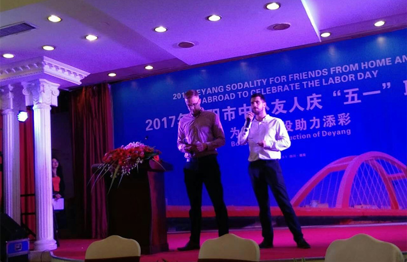 5月1日下午,我校四名外籍教师应邀参加德阳市政府举办中外友人庆“五一”联谊会,来自11个国家的23位在德阳工作的外国友人和5位回德阳创业的海归人士应邀参加联谊会,共庆国际劳动节。德阳市委副书记、市长赵辉出席并致辞。