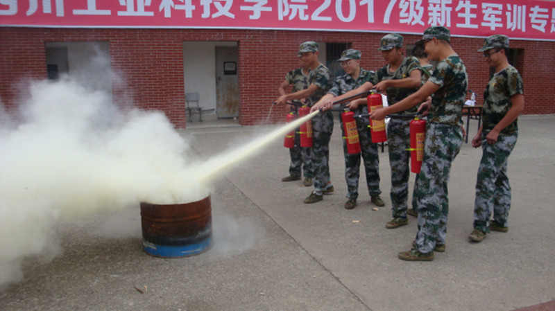 随后,消防大队警官彭银川向同学们介绍了几种常见的火灾类型和常用灭火器的类型、用途、操作方法等,并进行了现场培训。并随即抽调新生代表进行了油盆灭火(灭火器使用)体验。消防演习总指挥表示,把消防安全知识纳入军训非常必要,既增强了新生的消防意识,又让学生体会到消防安全的重要性。
