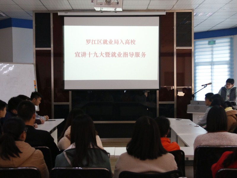 为使学生能够清晰地了解在“十九大”后、新时代背景下大学生就业的政策、机遇、挑战,更清晰的剖析自己,弥补不足,发扬优点,为踏入社会做准备。11月30日,就业指导服务中心邀请罗江区就业局局长王炜、主任顾明彦在电商中心举办主题为“ 罗江区就业局入高校宣讲十九大暨就业指导服务”的讲座。2016级财务管理专业学生参与听讲。