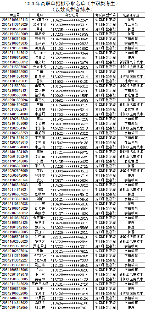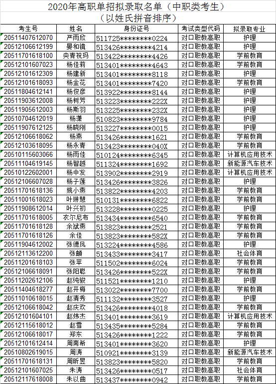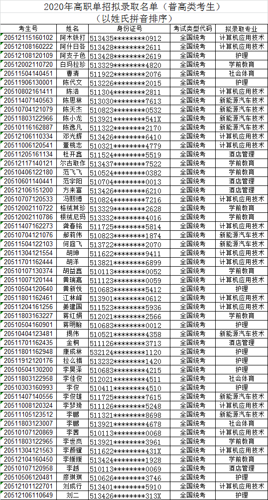 四川工业科技学院2020年高职单招考试拟录取名单公示