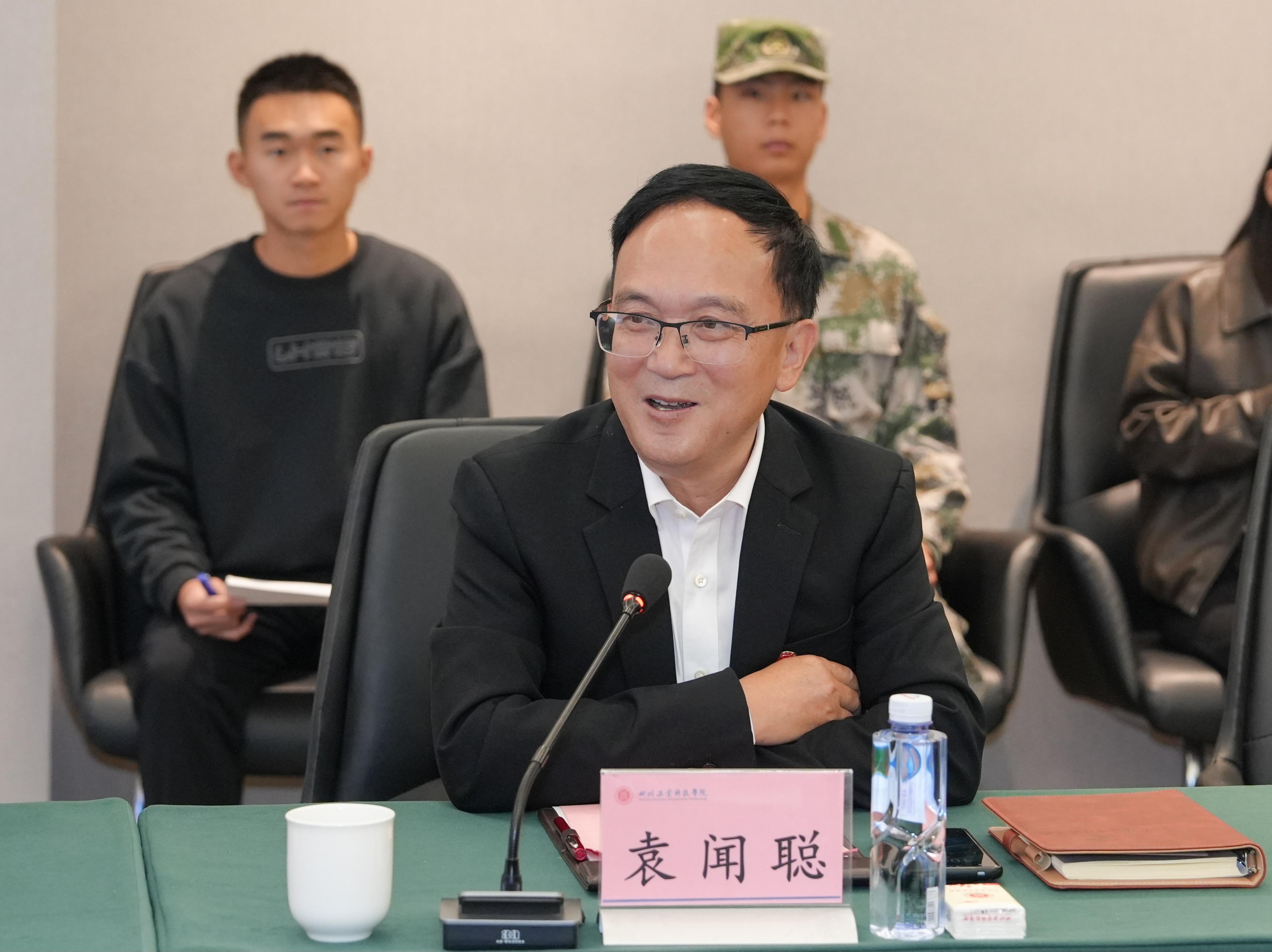 会上,党委书记袁闻聪代表学校对杨筠一行的到来表示热烈欢迎,对省、市、区各级部门长期以来给予学校征兵工作的指导与支持表示衷心感谢。他指出,学校始终高度重视征兵工作,将其作为履行国防教育责任、培养学生家国情怀的重要抓手,持续推动征兵工作与人才培养、校园建设深度融合,全力为国家输送优质兵员。