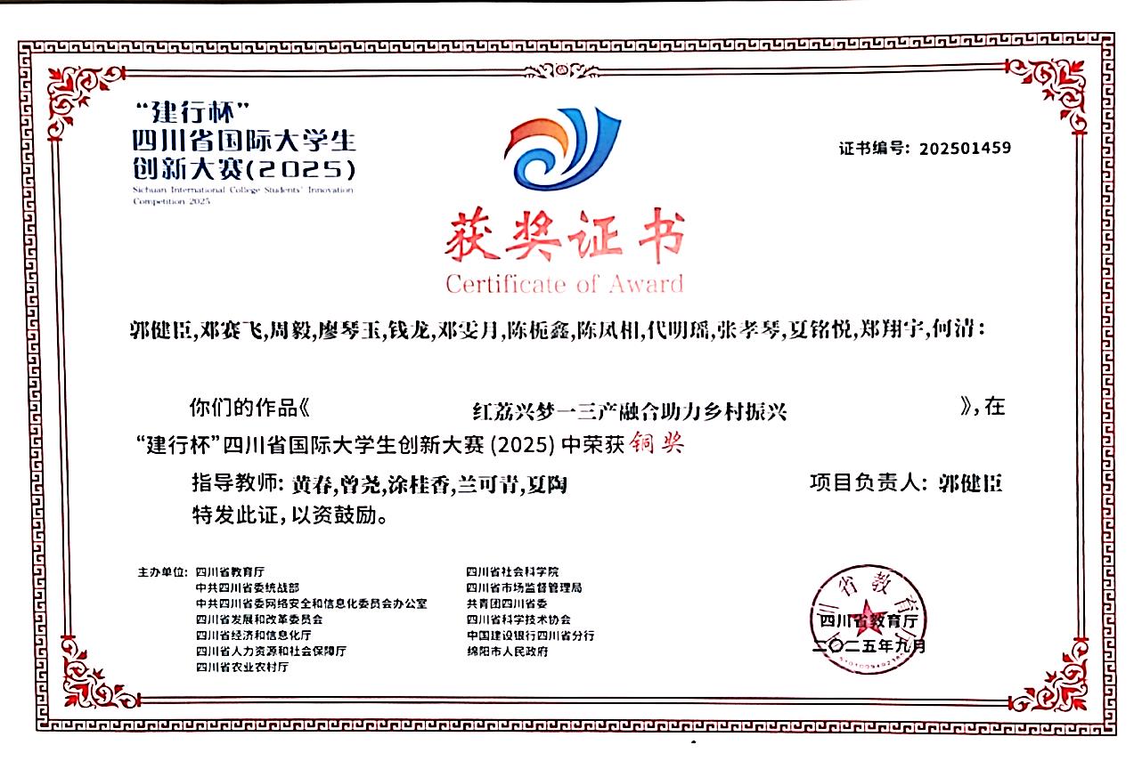 近日,四川省国际大学生创新创业大赛省级决赛在西南科技大学落幕。学校选派的三支参赛团队凭借出色表现,最终荣获“一银两铜”的优异成绩。其中,罗怀兵负责的“春旭科技”项目与邓赛飞带领的“U辐卫士Pro”项目分获高教主赛道银奖和铜奖;郭健臣团队的“红荔兴梦”项目斩获“青年红色筑梦之旅”赛道铜奖,实现学校在该赛道奖项零的突破。
