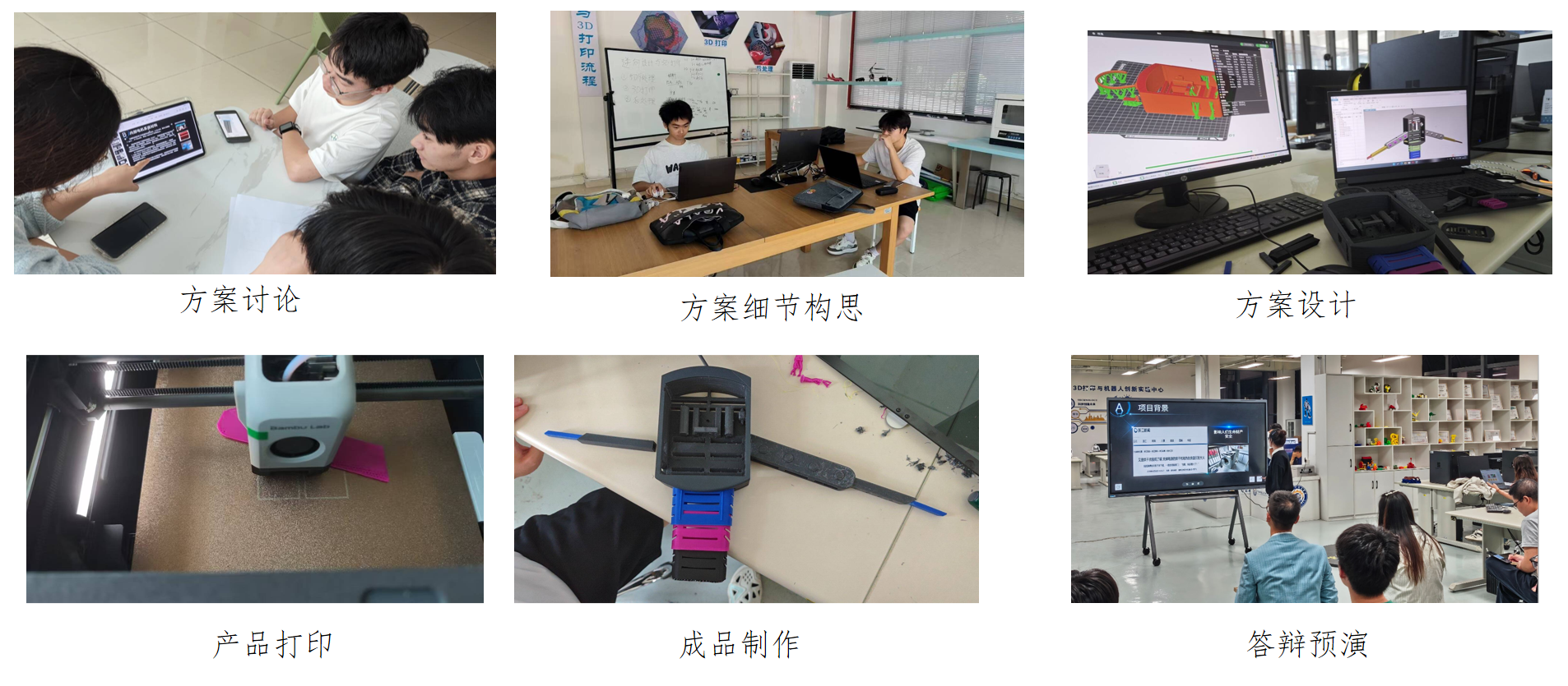 本次参赛团队由任泉霖等同学组成,自今年3月赛事启动以来,在指导教师的全程带领下,系统开展了项目调研、方案设计、模型构建、样机制作与迭代优化等工作。团队坚持精益求精,对设计细节、技术实现及答辩呈现进行多轮打磨。在备赛过程中,师生协同攻坚,以扎实的专业基础、清晰的创新思路和严谨的工程实践,最终赢得评审专家的一致认可。