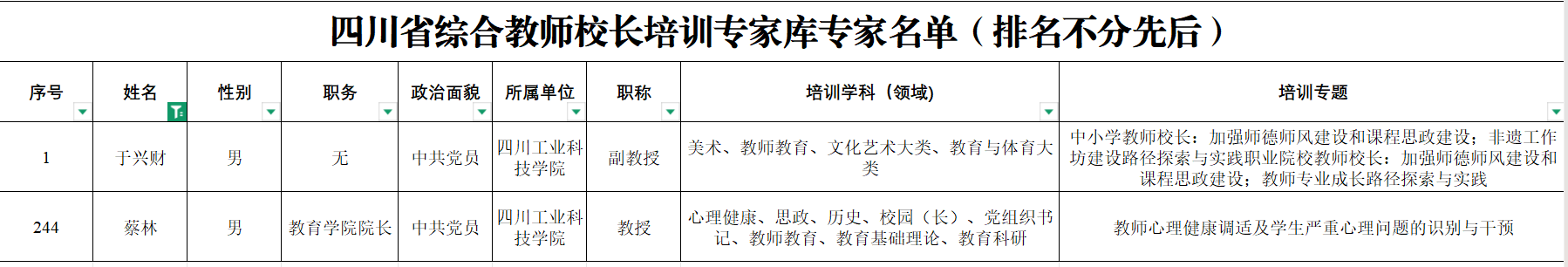 近日,四川省教师发展中心正式公布2026年四川省中小学和职业院校教师校长省级培训专家库名单,学校校长助理、教育学院院长蔡林教授,国际学院副院长于兴财副教授成功入选。