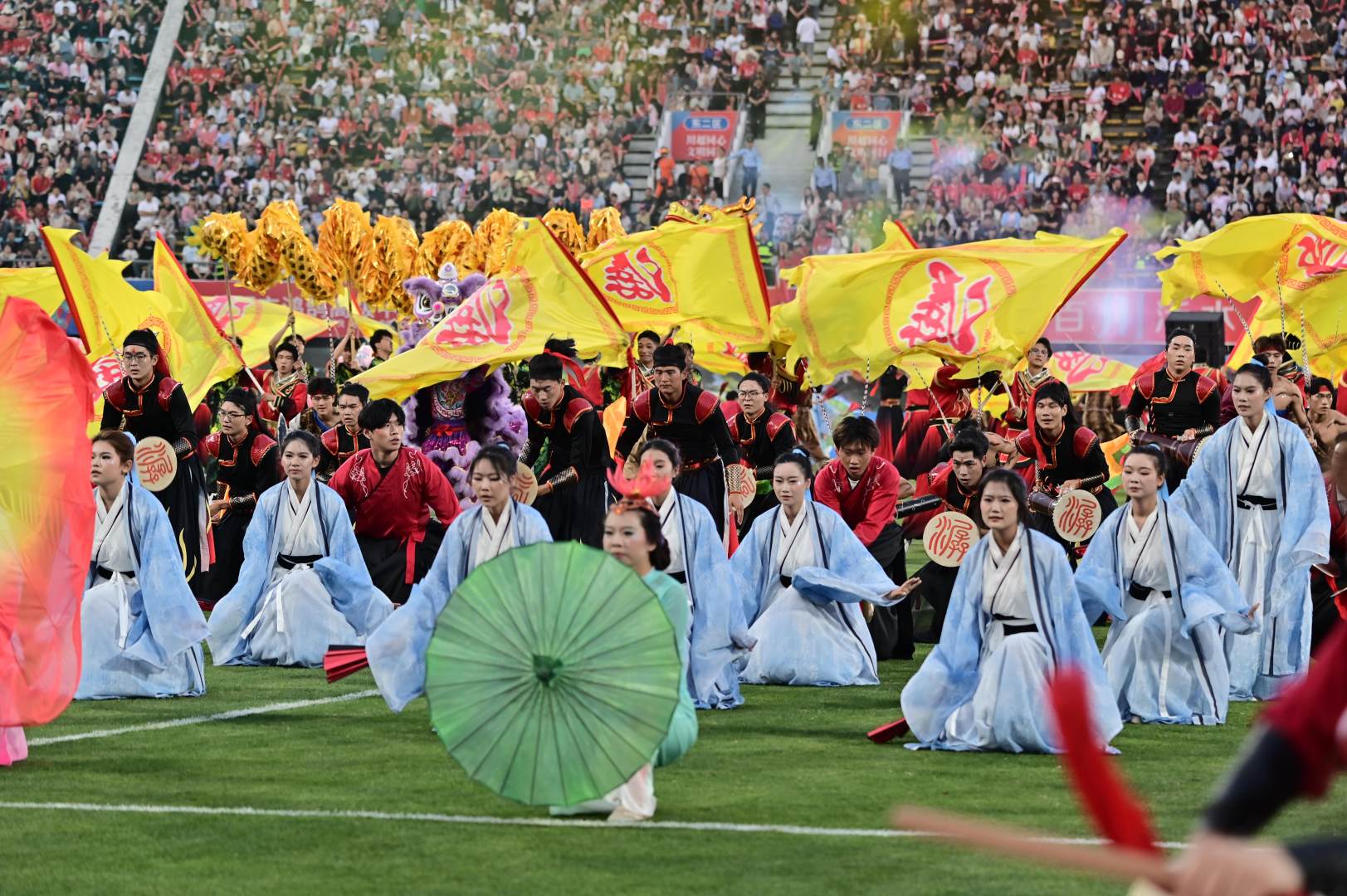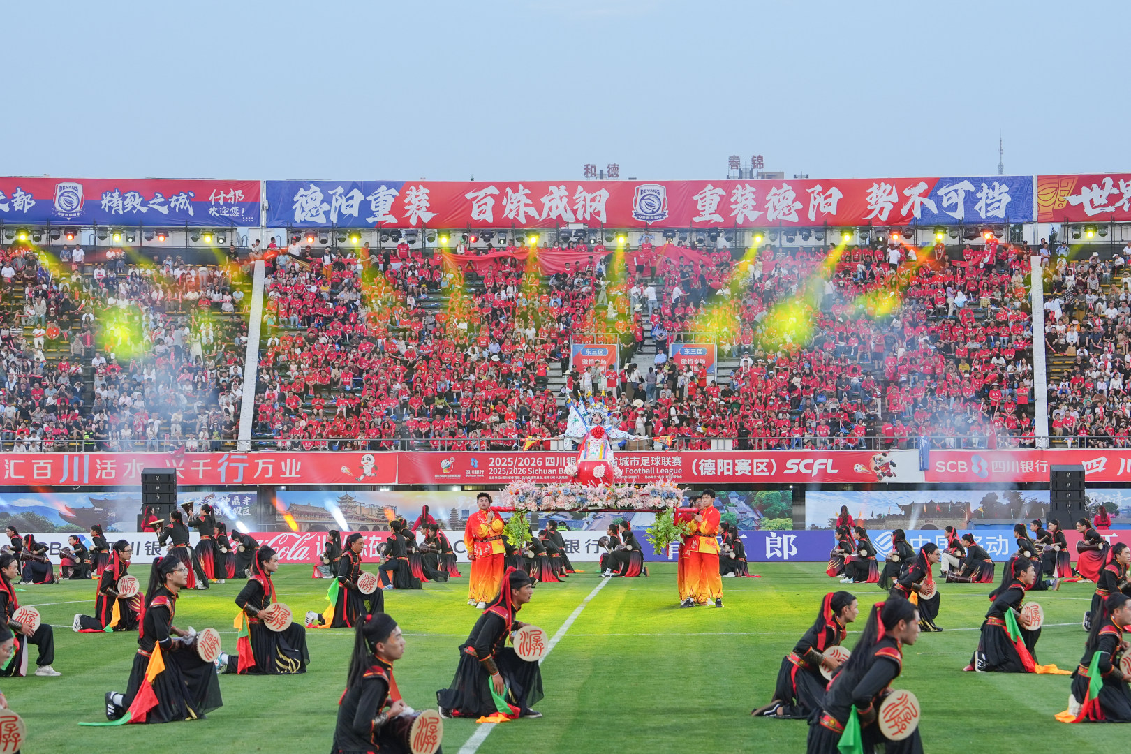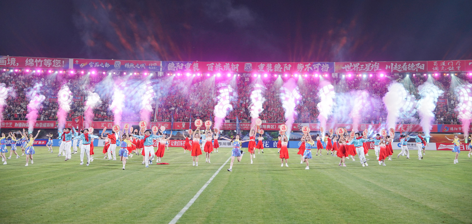 非遗燃情绿茵!学校500余名师生组演《潺舞》惊艳川超赛场