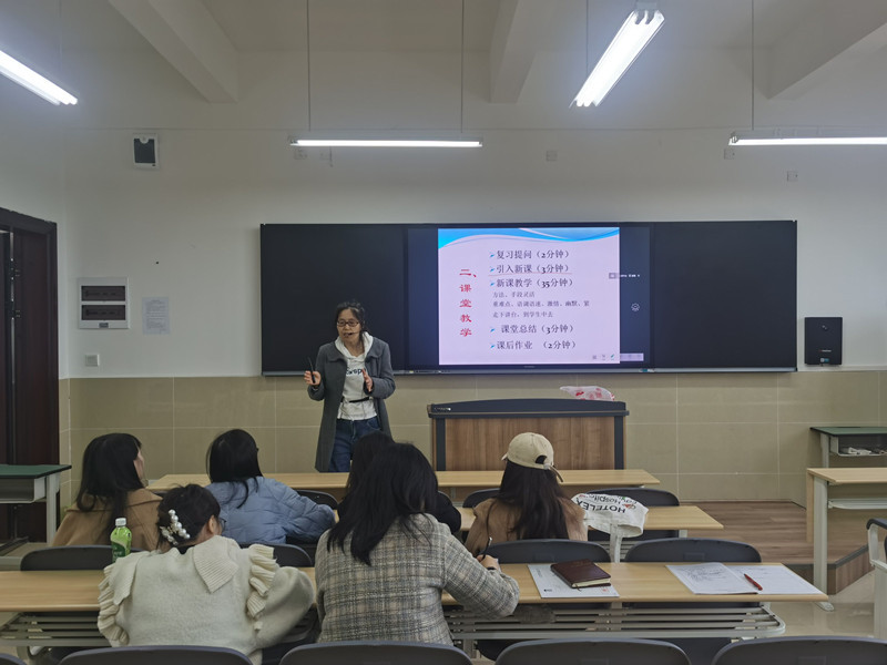 在集中讲解环节,欧应华老师针对理论授课的全过程,教学前准备、教学中实施、教学后评价等做了详细介绍。她指出:课前准备:主要包括了“备教材、备学生、备教法”这三方面的准备。其中“备教材”是指对教材的钻研,“备学生”是指对学生的研究和分析,包括学生的基础等,“备教法”是指根据教学内容合理的选择教学方法;其次课堂教学:包括五点,分别是复习提问、引入新课、新课教学、课堂总结、课后作业这五个步骤及相关具体的内容要求和时间分配。