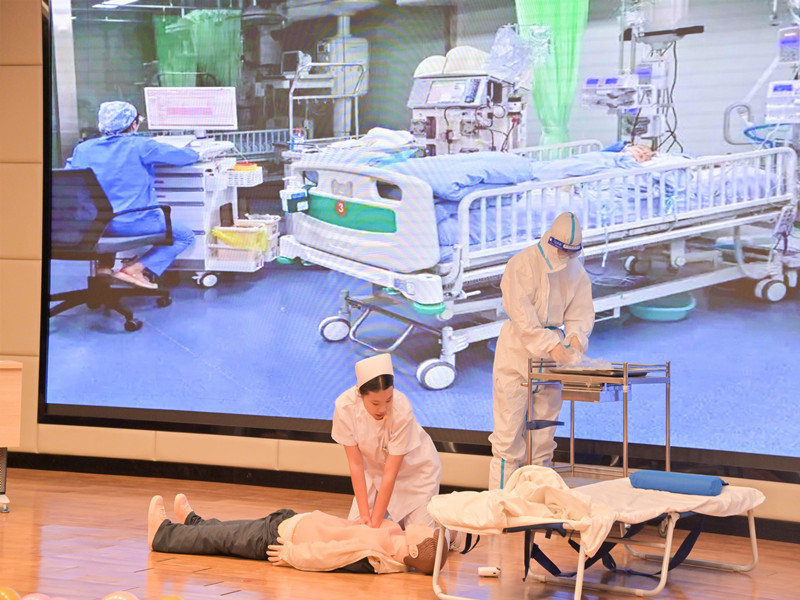 紧接着《红色五月青春 颂赞白衣天使》主题演讲用张弛有力的声线表达了对医护人员的赞美和敬佩;双人舞蹈《平凡的天使》用优美的舞蹈致敬每一位坚守在一线的平凡英雄,致敬每一位默默付出的川工科护理人;《穿脱隔离衣》技能展示,进一步彰显了护理人精湛的技能操作水平;护理情景剧《寻找我前半生的初心》的演绎则生动展示护理人的奉献与责任担当;《天使之美》护理礼仪用端庄得体的肢体语言充分展示了天使的风采,深刻诠释护士职业内涵。