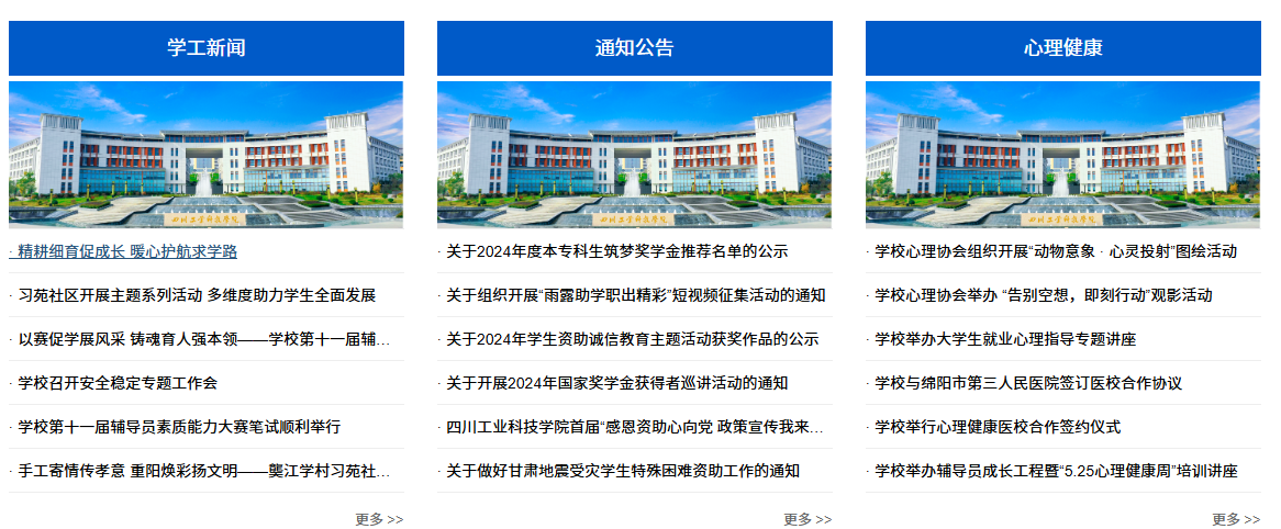 在宣传引导与氛围营造方面,学生处紧密围绕思政教育、学风建设、资助育人、心理护航、安全教育、公寓管理等中心工作,通过学校官网、学工部(处)网站及川工科学生资助微信公众号、心雨心岸微信公众号等平台,积极宣传学生工作育人故事,准确传达学生工作会议精神,及时发布相关通知公告,生动展现学子们昂扬向上的精神风貌,多篇稿件被学校官网“工科新闻”板块和“院部动态”板块采用,学生工作铸魂育人的影响力、传播力、引导力显著提升,为深入推进学校“三全育人”工作营造了良好的舆论氛围和向上的校园文化。